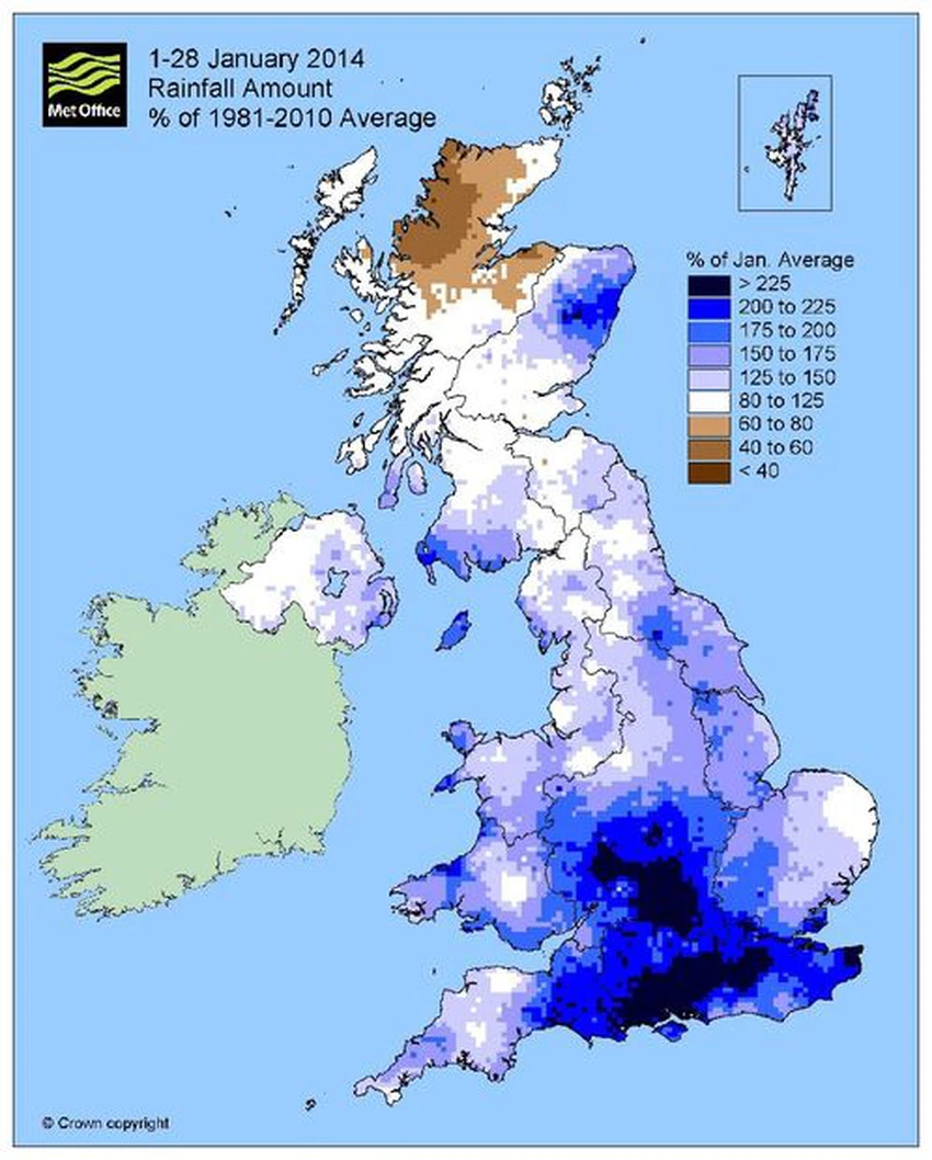 جنوب بريطانيا و أكثر شهر يناير أمطاراً منذ بداية السجلات المناخية
