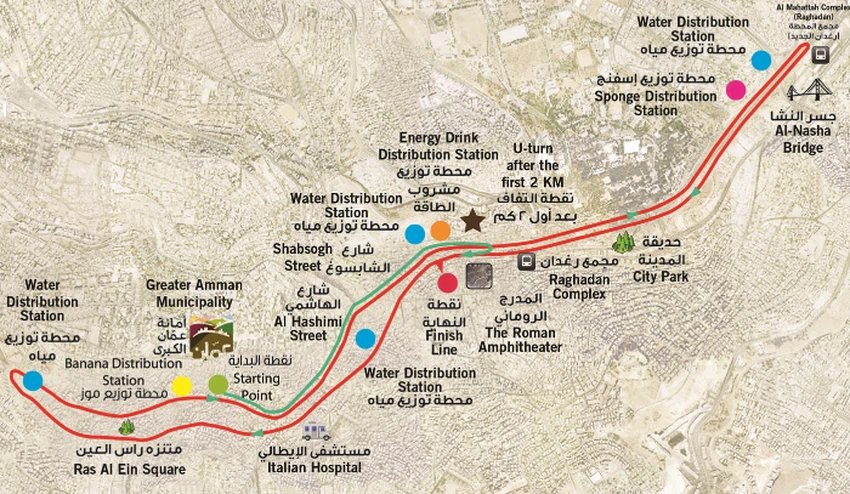 أما بالنسبة إلى سباق الـ10 كيلومترات، فينطلق من مدينة الحُسين للشباب في العاصمة عمّان.