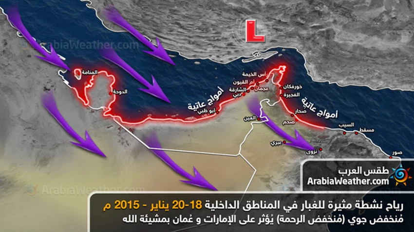 موقع ArabiaWeather.com- عمر الدجاني- تُشير آخر البيانات المستلمة من نماذج التنبؤات الجوية الحاسوبية وصور الأقمار الاصطناعية لدى مركز طقس العرب الإقليمي للأرصاد والتنبؤات الجوية، في مركز طقس العرب الإقليمي، إلى أن دولة الإمارات ستتأثر بمنخفض الرحمة اعتباراً من ساعات ليلة الأحد/ الإثنين على أن تزداد رقعة المناطق المُتأثرة بالمُنخفض يوم غدٍ الإثنين، ويستمر تأثير المُنخفض الجوي حتى نهار الثلاثاء. وعلى إثر ذلك يُتوقع أن تشهد الدولة الأحوال والظواهر الجوية التالية.