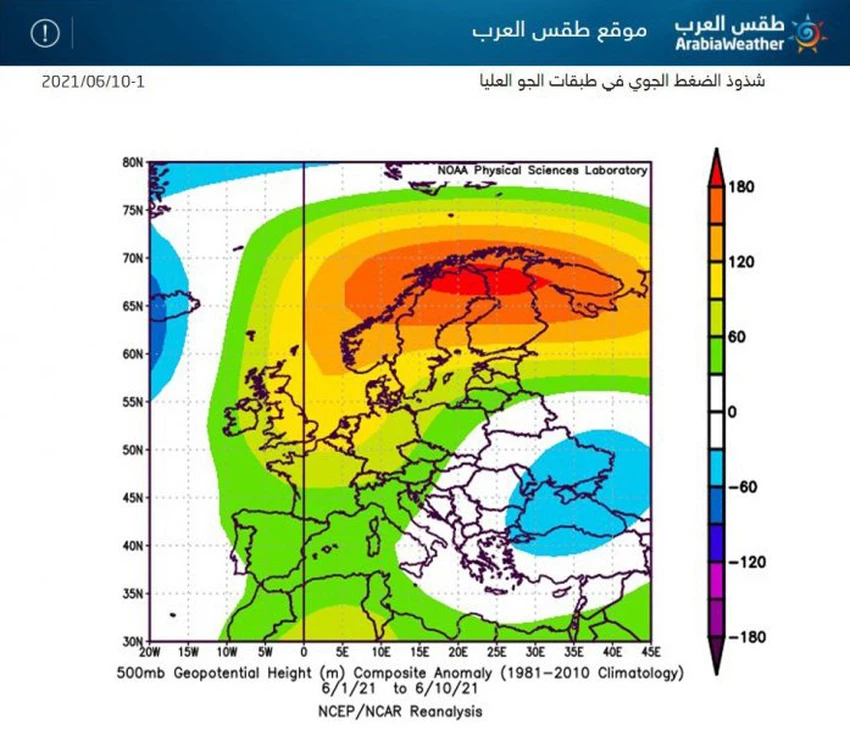 عند استعراض العوامل الجوية السائدة، نلاحظ اندفاع كتل هوائية حارّة نحو أجزاء واسعة من القارة الأوروبية ومرافقة لسيطرة مرتفع جوي عنيد في طبقات الجو كافة شمال غرب القارة الافريقية الذي يمتد على فترات لعُمق القارة الأوروبية مُسبباً ارتفاعاً كبيراً على درجات الحرارة هناك، مما عمل على اندفاع كُتل هوائية باردة نحو شرق اوروبا أي حَوَّلَ منطقة المرتفع الجوي، كما يتواجد مُرتفع جوي أخر نواحي ايران امتداداً الى دول غرب أسيا، مما عمل على حصر الكُتلة الهوائية الباردة شرق القارة الأوروبية مع امتدادها نحو الحوض الشرقي للمتوسط، حيثُ يكاد يكون هذا النظام الجوي الأبرز منذ بداية الشهر الحالي.