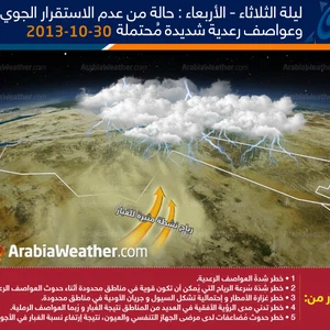 ونظراً لشدة العواصف الرعدية المُتوقعه هذه الليلة قام فريق العمل لدى مركز "أرابيا ويذر" الإقليمي بتصميم الشكل التوضيحي المُرفق الذي يُبين بعض الإرشادات الواجب إتباعها أثناء حُدوث العواصف الرعدية