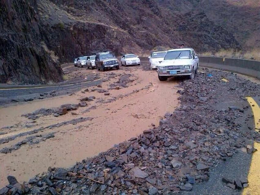 بالصور: الانهيارات الطينية تغلق طريق عقبة الصما بعسير