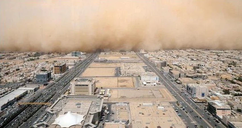 مدينة الرياض، وتعود معظم أسباب تلوث الهواء فيها إلى العواصف الرملية، فضلاً عن الملوثات الناجمة عن حركة النقل ومخلفات الصناعات.