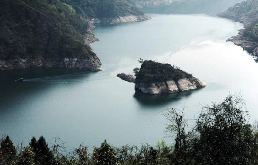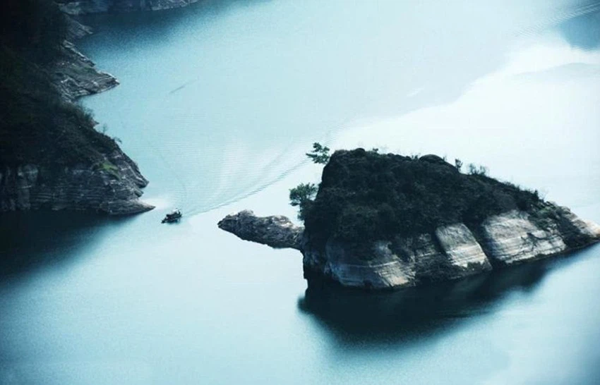 ويطلق الصينيون على الجزيرة الصغيرة اسم "سلحفاة الربيع المتصاعدة من الماء"، حيث تبدأ بالظهور فوق الماء، عند انخفاض مياه النهر إلى مستوى 175 متراً، وعندما يصل الماء إلى 145متراً تصبح الصخرة متصلة مع البر الرئيسي بحسب صحيفة "الديلي ميل" البريطانية.
