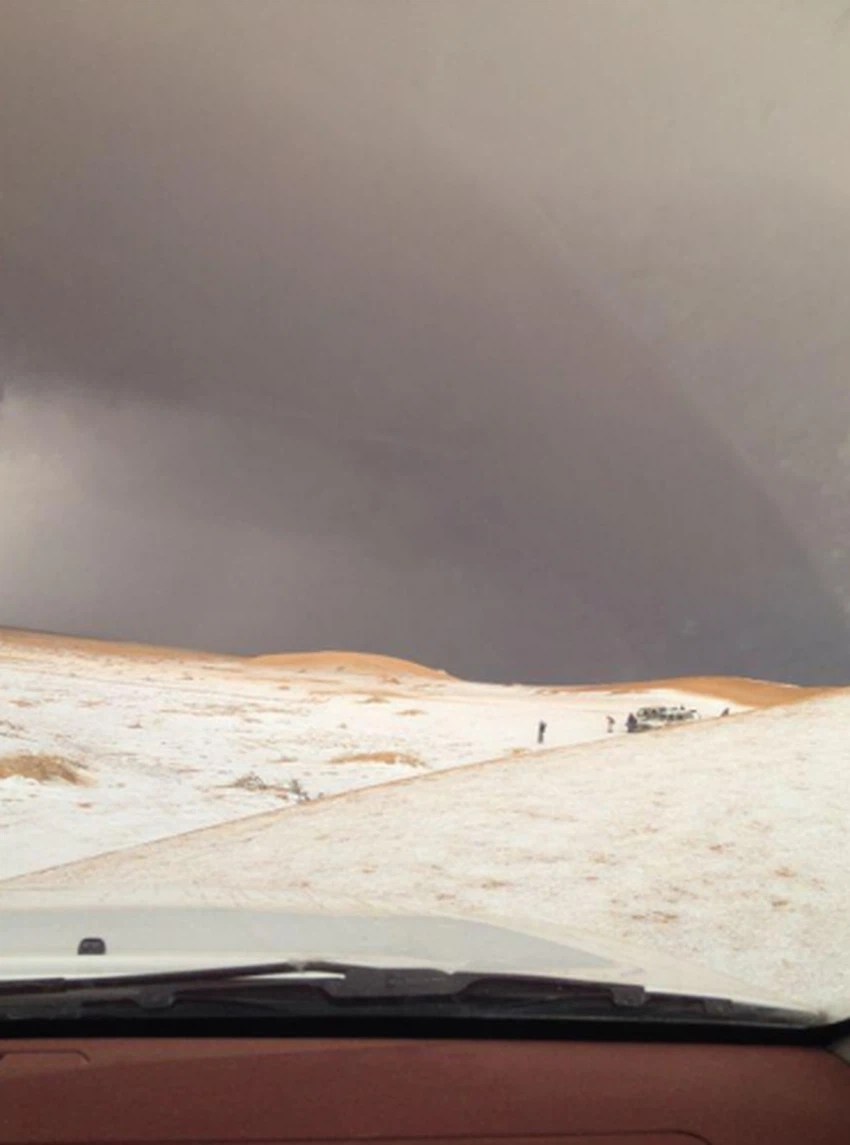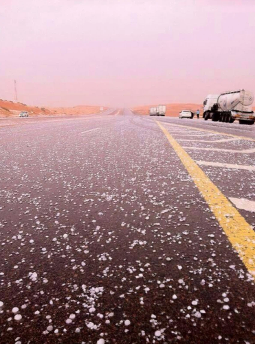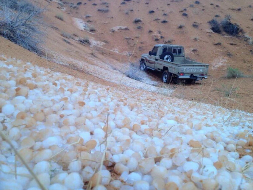 ثالثاً: العاصفة البردية التي ضربت حائل عصر الخميس 26/12/1434 وألبست رمالها اللون الأبيض