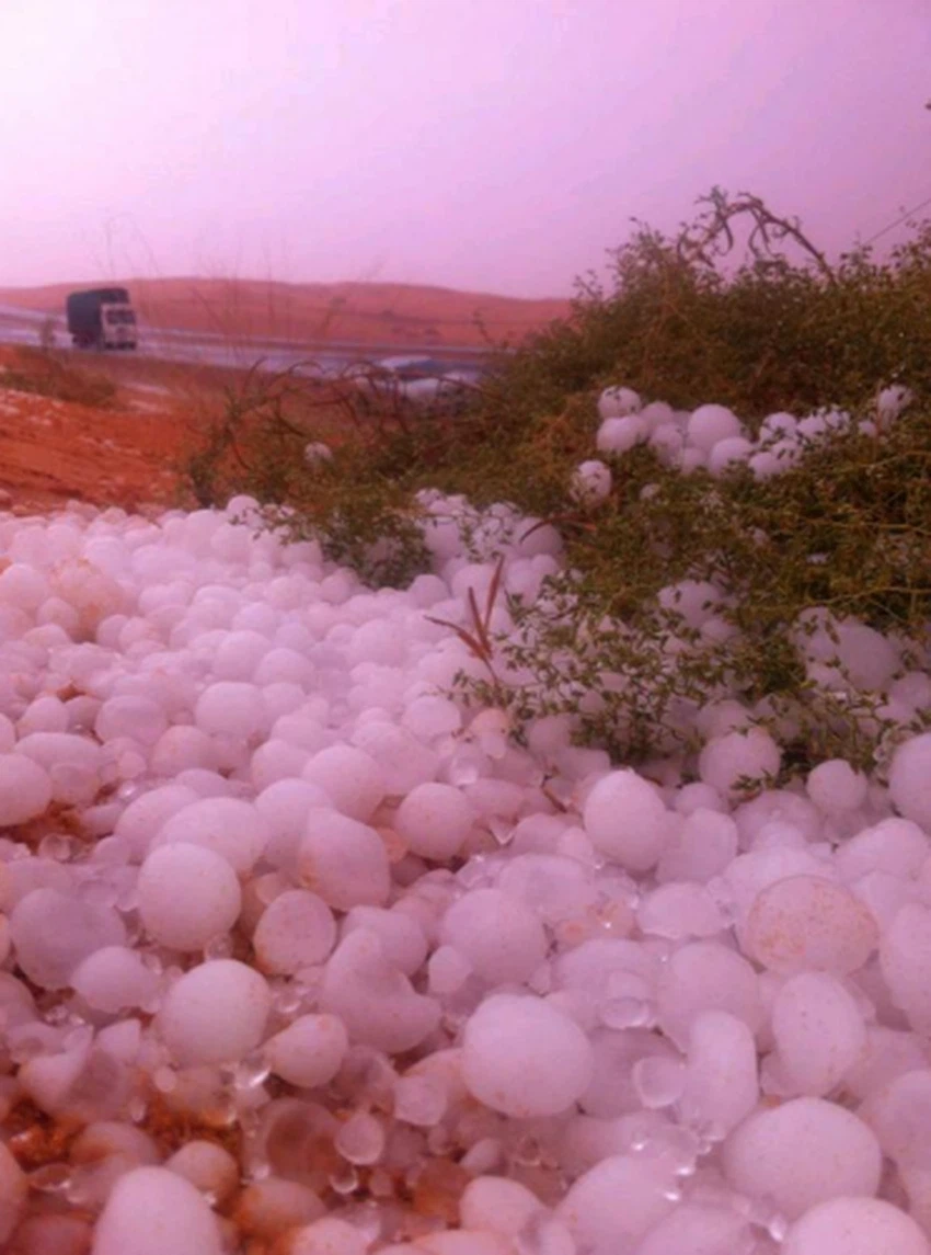 رابعاً: صور العاصفة البردية التي ضربت حائل مساء الأحد 28/4/2013 بعد تأثر المنطقة بسحب رعدية قوية عملت على تساقط البرد