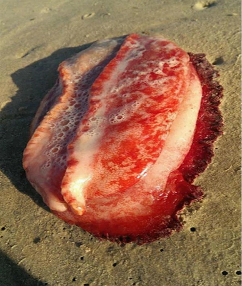 موقع ArabiaWeather.com- كشفت حركة الأمواج في مدينة صن شاين كوست الأسترالية، وبالتحديد على شاطئ مودجيمبا، عن كائن رخوي ذو لون أحمر يبلغ طوله 25 سنتيمتراً.