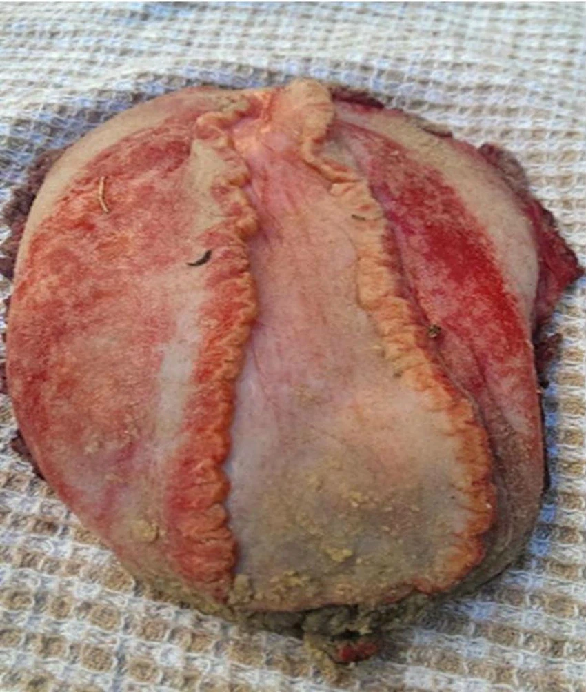 ووصفت "هيجز" هذا المخلوق بأنه بلا أطراف وبلا عينين أو فم وأنه بارد وذو رائحة كريهة، كما التقاطت له صوراً ووضعتها على مواقع التواصل الإجتماعي، ما أثار العديد من التساؤلات عند الكثيرين، وحول حقيقة هذا الكائن، فقد تباينت الآراء الاعتقادات فيمن يرجّح أن يكون بقايا أحشاء حوت، وبين من يعتقد أنه كائن هلامي.