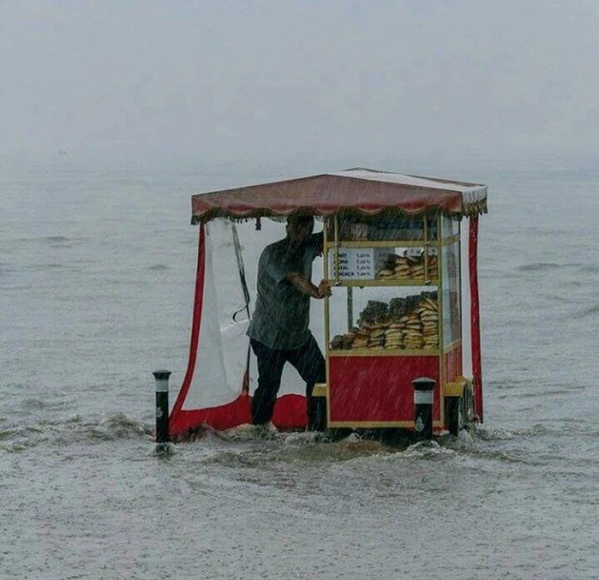 وأظهرت لقطات أخرى موجات من البرد والأمطار وهي تتدفق على درج محطة مترو تقسيم.