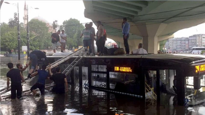 وتلك هي المرة الثانية هذا الشهر التي تتسبب فيها الأمطار الغزيرة في غمر الشوارع وتعطيل المواصلات في اسطنبول.