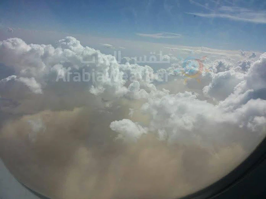 وقد أرسلت لنا الصديقة "دينا زيادين" صورًا من الطائرة أثناء نزولها بمطار الملكة علياء الدولي للعاصفة الرملية التي تاثرت بها المناطق الشرقية للمملكة.