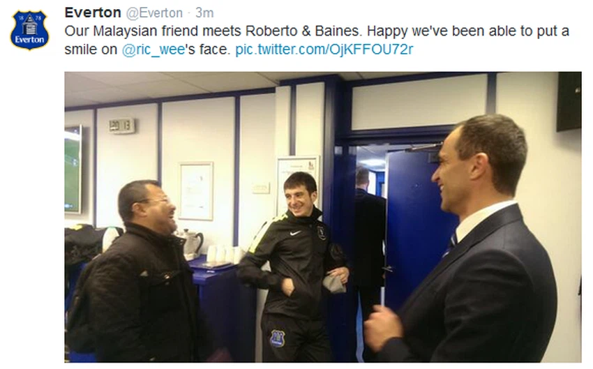 و لكن لا تقلقوا فللقصّة نهايةٌ سعيدة،حيثُ رأى المسؤولون في إيفرتون مشاركات المُشجّع الماليزي على تويتر، فجهّزوا له مفاجأة تتمثّل في التقاءه مع المسؤولين و اللاعبين في النّادي.