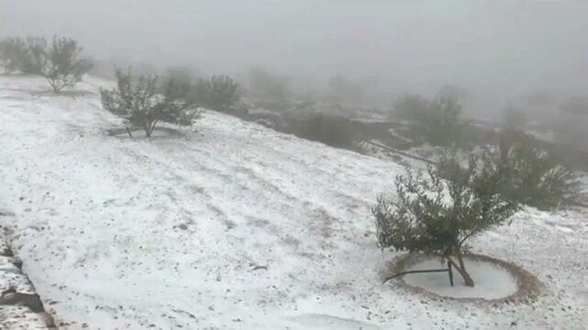 موقع ArabiaWeather.com- مثنى حزيّن - غطت الثلوج اليوم الجمعة جبل جيس أعلى قمة في الإمارات، كما تشهد عدة مناطق في الدولة اليوم تساقط أمطار متفرقة خاصة على السواحل والمناطق الشمالية، فيما شهدت المرتفعات الجبلية أمطاراً متجمدة.