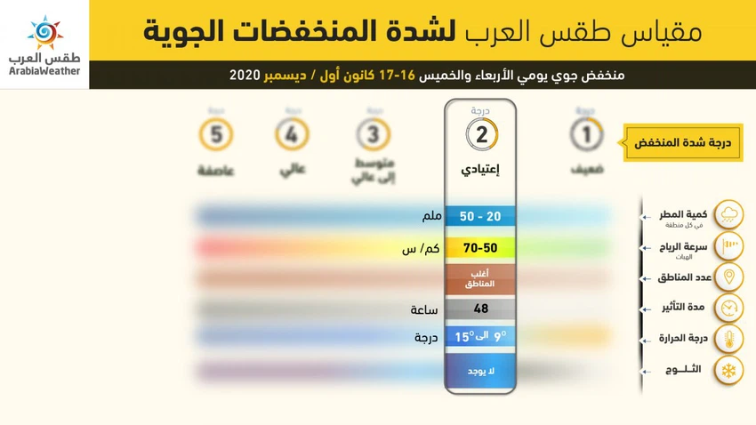 وتشير التُوقعات إلى أن كميات الأمطار المُتوقع هطولها في المُنخفض الجوي القادم قد تتراوح ما بين 20 - 50 ملم وسيكون شامل لأغلب مناطق المملكة