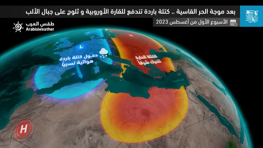 طقس العرب - بعد أن شهدت جنوب القارة الأوروبية موجة حارة قاسية و تاريخية خلال الأسابيع الماضية تسببت بارتفاع درجات الحرارة إلى مُستويات غير مُسبوقة في بعض المُدن مثل روما و كتالونيا. من المُنتظر أن تشهد أجزاء واسعة من غرب و وسط و جنوب أوروبا اندفاع لهواء بارد يرافقه انخفاض كبير على درجات الحرارة في العديد من الدول خلال الأسبوع الأول من شهر أغسطس/آب القادم.