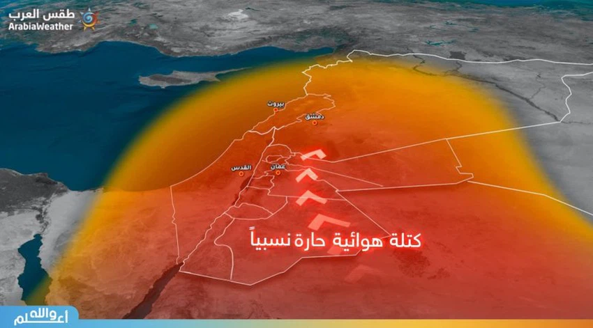 طقس العرب - يتزايد تأثر بلاد الشام بتيارات بحرية رطبة مصدرها البحر المتوسط، بحيث تميل درجات الحرارة للانخفاض الطفيف خلال نهاية الأسبوع بالمقارنة مع الأيام الماضية، مع بقاء الأجواء حارة نسبياً في مختلف المناطق، وسط مؤشرات على استمرار هذه الأجواء خلال الأيام القادمة.