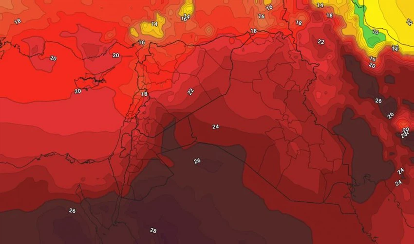 طقس العرب - تندفع كتلة هوائية حارة نسبياً على عُموم منطقة بلاد الشام اعتباراً من يوم الخميس، من صحراء شبه الجزيرة العربية، حيث تتجاوز درجات الحرارة مُعدلاتها المُعتادة نسبةً لهذا الوقت من العام بشكلٍ كبير.