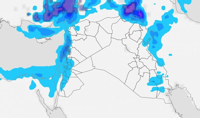 طقس العرب - تعيش معظم مناطق الحوض الشرقي للبحر الأبيض المتوسط بما فيها بلاد الشام أجواء خماسينية جافة ومغبرة حيث تسجل خلال ساعات النهار درجات حرارة تلامس الـ30 مئوية في أغلب المناطق. إلا أن آخر المخرجات الحاسوبية تشير إلى حدوث تغير جذري في حالة الطقس في المنطقة نهاية الأسبوع الحالي وبداية الأسبوع القادم.