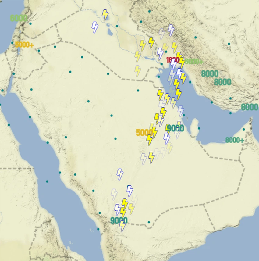 كما يعمل الهواء الهابط المصاحب للسحب الركامية على أثارة الغبار والأتربة في بعض هذه المناطق، ويلاحظ استمرار الحالة الجوية على جنوب غرب وأجزاء من وسط أمانة الرياض وتشمل العاصمة الرياض بزخات متفرقة وتشتد على أجزاء من شرق وجنوب غرب وجنوب المملكة.