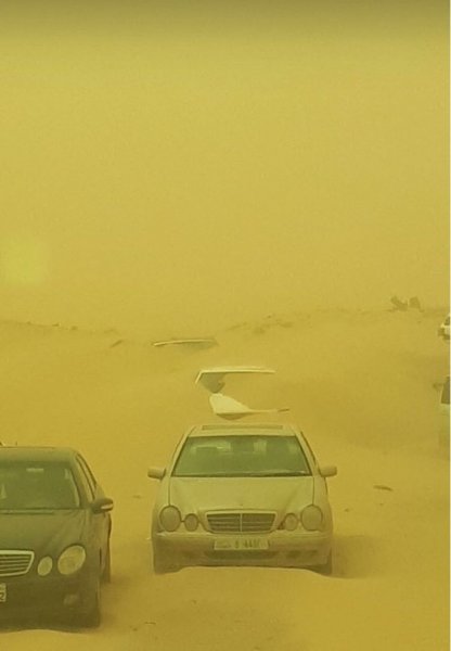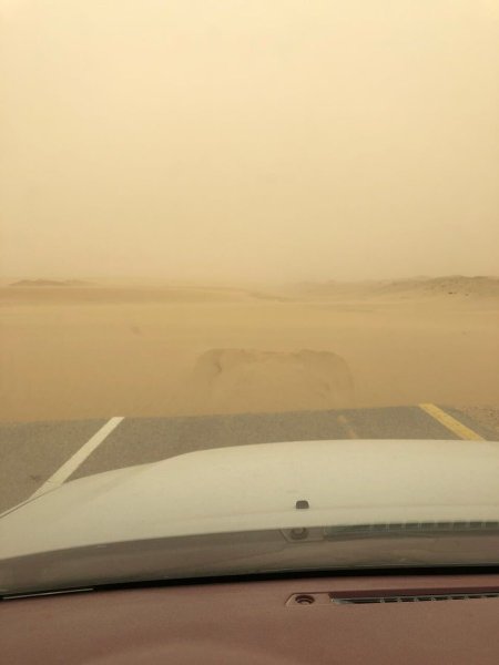 طقس العرب - سنان خلف - بعد كُل هبة رياحٍ يتكرر ذات المشهد، وربما بذاتِ العنوان، "تسونامي الرمال يُخفي طريق ابرق الكبريت"!
