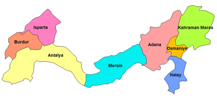 تقع هذه المنطقة في معظمها على شريط ضيق من الأراضي بين جبال طوروس المغطاة بأشجار الصنوبر وشواطئ البحر الأبيض المتوسط، شريط من الأماكن الساحرة تحت الشمس الدافئة وجنبا إلى جنب التاريخ والفنون والتقاليد.