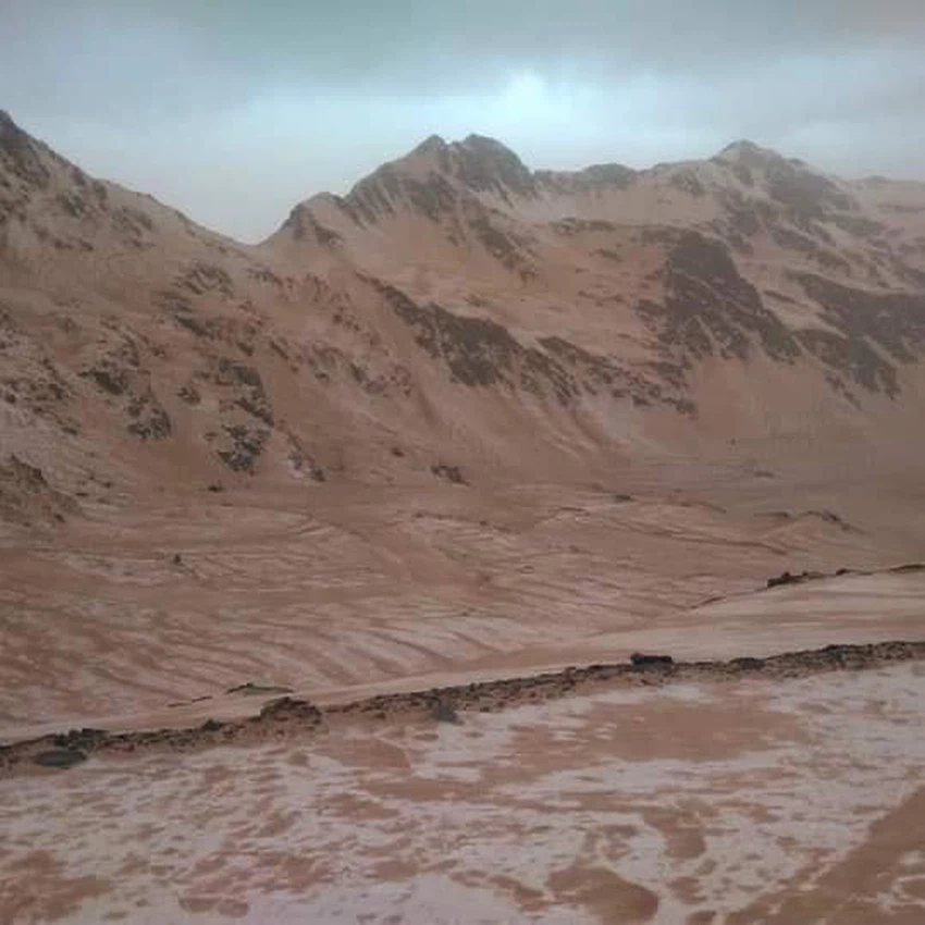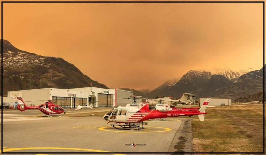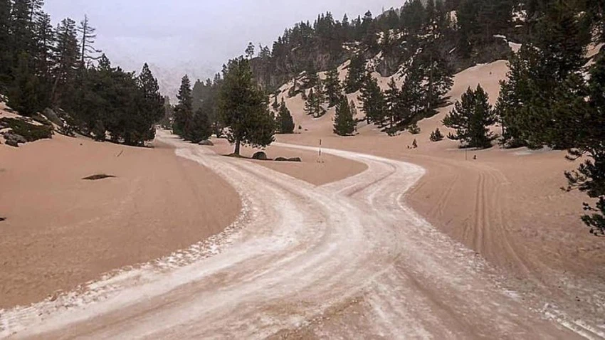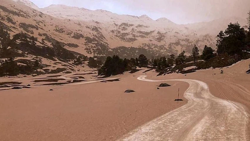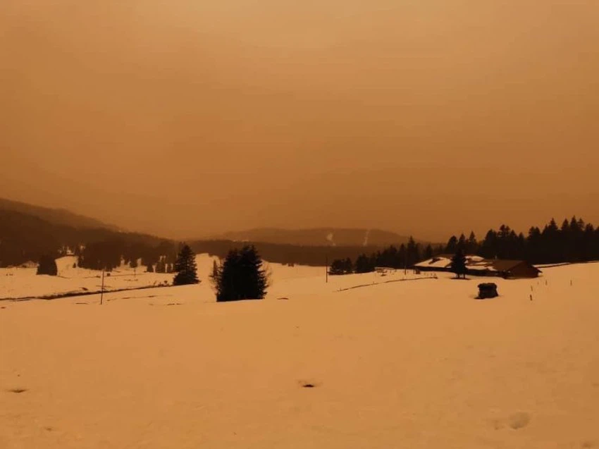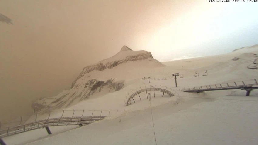 شهدت جبال الالب ثلوج لونها برتقالي بسبب تأثرها بعاصفة غبارية قوية سببها تشكل منخفض جوي غرب البرتغال نشأت عنه رياح جنوبية من غرب الصحراء الأفريقية وأمتدت نحو أوروبا وصولاً نحو جبال الألب