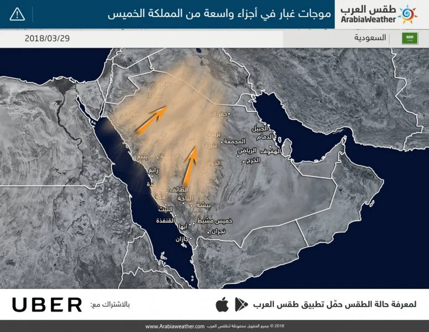 هذه الرياح والأجواء المغبرة المُتوقعة ترجع إلى تأثر المملكة بحالة من عدم الإستقرار الجوي، قد تُصحب ببعض الأمطار في مناطق الحدود الشمالية. .