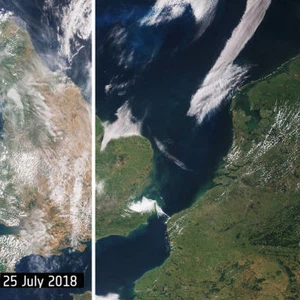أراضي أوروبا الخضراء تتعرض للجفاف بسبب تتالي موجات الحر ونقص الأمطار- شاهد الفرق بين شهري حزيران وتموز 2018