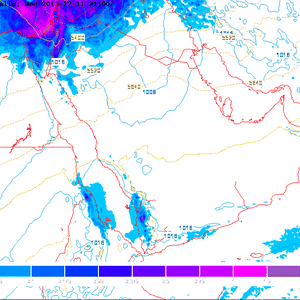 و نتيجة لتأثر شمال السعودية و خاصة شمالها الغربي بمنخفض جوي اعتباراً من يوم الأربعاء، يصبح الطقس في تلك المناطق بارداً إلى شديد البرودة و تتساقط الأمطار في أجزاء من تبوك و الجوف و تكون غزيرة بمشيئة الله و مترافقة مع حدوث العواصف الرعدية و تساقط حبات البرد.
