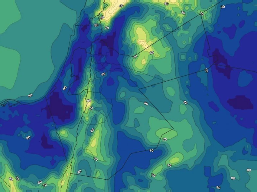 ويحدث ارتفاع كبير في نسب الرطوبة السطحية بحيث تكون الفرصة مهيأة لتشكل الضباب في عدة مناطق من السهول الشرقية والبادية بما فيها منطقة زيزيا ومطار الملكة علياء الدولي. ولا يُستبعد أن يكون الضباب كثيفًا ويتسبب بتدني الرؤية الأفقية لما دون 500 متر، خاصة في فترة الصباح الباكر، ويشمل أجزاء من الطريق الصحراوي المؤدي من العاصمة عمان إلى جنوب المملكة ويصل أحيانًا إلى داخل بعض المدن.
