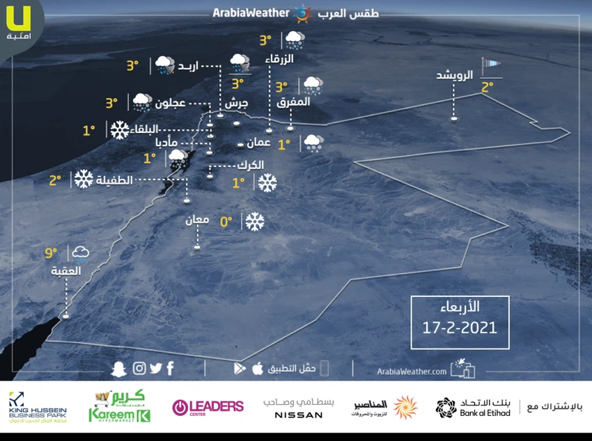 درجة الحرارة الصغرى المتوقعة في إربد: °3