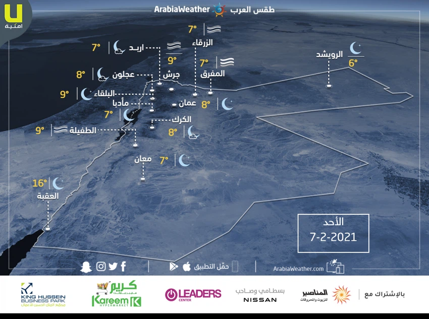 درجة الحرارة الصغرى المتوقعة في المفرق: °7