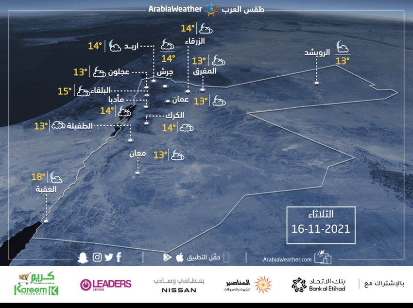 طقس العرب - يتوقع أن تنخفض درجات الحرارة لتصبح حول معدلاتها لمثل هذا الوقت من العام، بحيث يستمر الطقس خريفياً لطيفاً في أجزاء عِدّة من المملكة، مع ظهور بعض السحب المُتوسطة والعالية، وفي حين تكون الرياح شمالية غربية خفيفة إلى مُعتدلة السرعة.