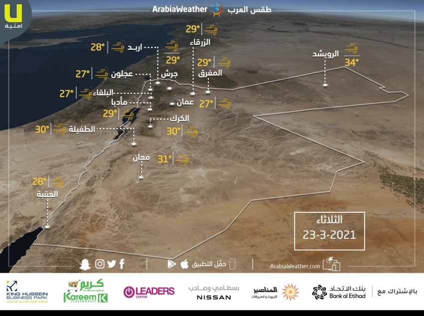 درجة الحرارة العظمى المتوقعة في المفرق: °29