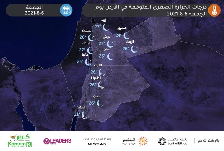 يتوقع ان تعاود درجات الحرارة الليلية للإرتفاع الملحوظ ويكون الطقس دافئاً للغاية بالنسبة لساعات الليل في مُختلف المناطق، و تكون الرياح شمالية غربية مُعتدلة السرعة، تنشط أحياناً.