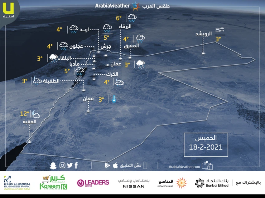 درجة الحرارة العظمى المتوقعة في الكرك: °5