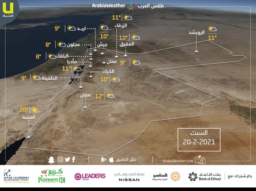 درجة الحرارة العظمى المتوقعة في العقبة: °20