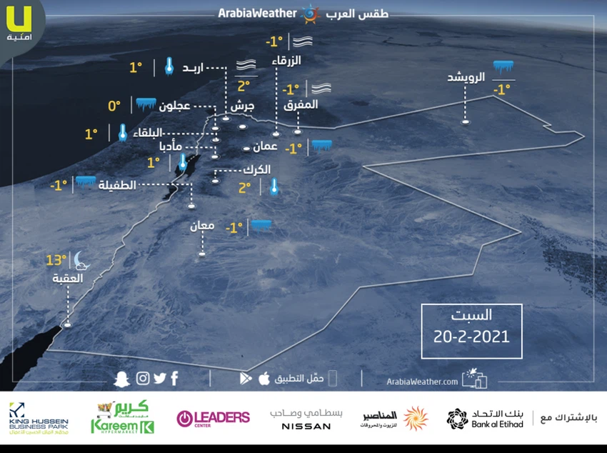 درجة الحرارة الصغرى المتوقعة في المفرق: °-1
