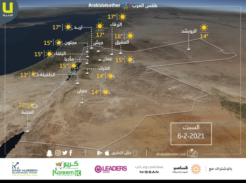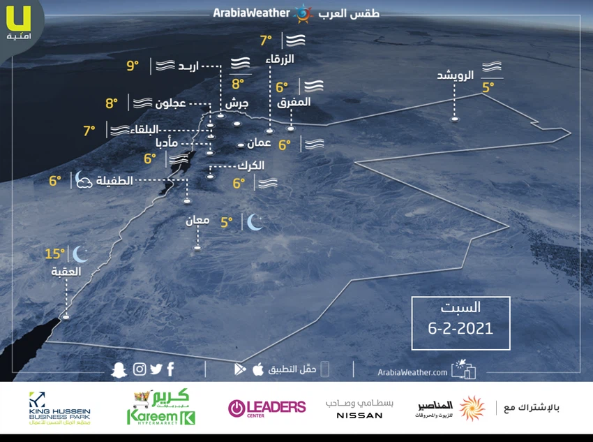 حالة الطقس المتوقعة ليلة السبت في الأردن:
