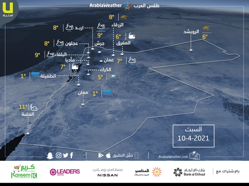 حالة الطقس ودرجات الحرارة المتوقعة في الاردن يوم السبت 10-4-2021