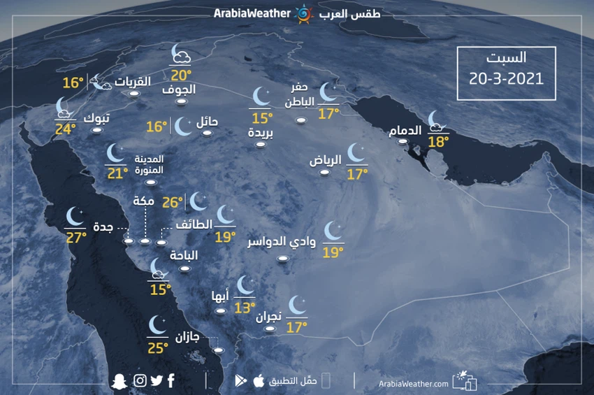 طقس العرب - يكون الطقس يوم السبت على النحو الآتي: