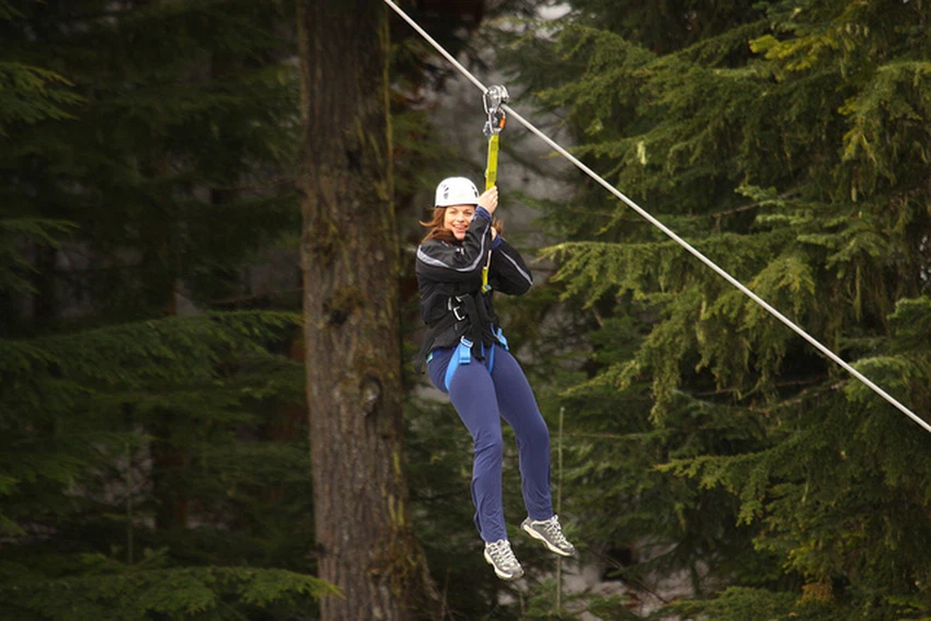 هناك عدد كبير من الجولات التي توفر تجارب التنقل والانزلاق على الحبال من القمم الثلجية إلى الغابات المطيرة الكثيفة، وتعتبر قمة جبل كوغار (قرية ويسلر، كولومبيا البريطانية) واحدة من أفضل الأماكن لممارسة هذه المغامرة على خطوط يصل طولها إلى كيلومتر، وترتفع 200 متر في الهواء.