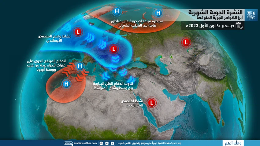 طقس العرب - أصدر فريق التنبؤات الجوية في مركز طقس العرب الإقليمي توقعات الطقس لشهر ديسمبر 2023، والتي تُرجح تأثر منطقة شبه الجزيرة العربية بانقلاب جذري على الاجواء ما بعد منتصف الشهر وفرص لأمطار على فترات، وفيما يلي التفاصيل:
