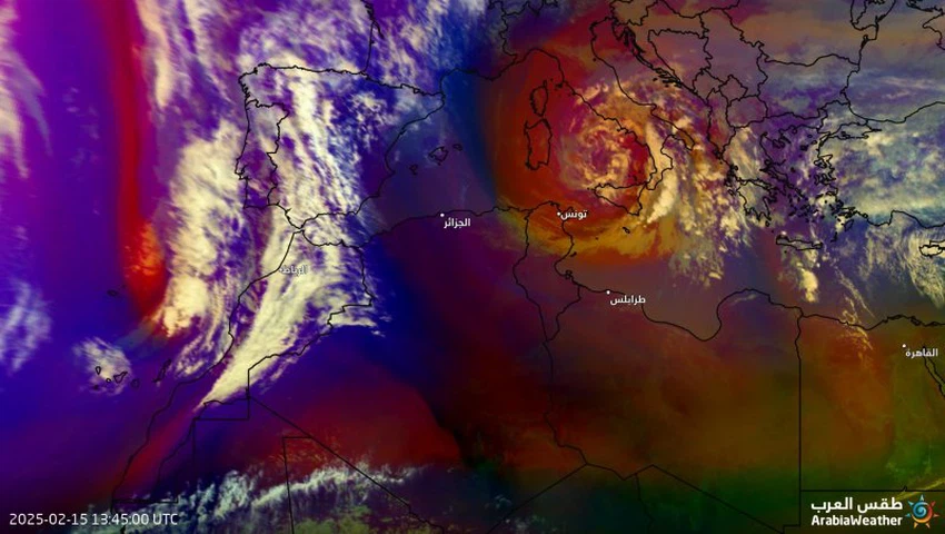 صور الأقمار الاصطناعية تُظهر منخفض جوي وسط البحر الأبيض المتوسط