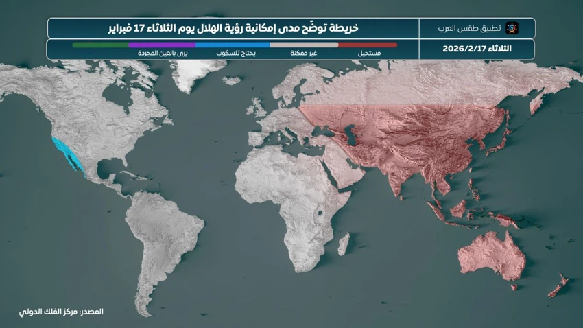 طقس العرب – يترقب العالم العربي والإسلامي مساء الثلاثاء 17 فبراير 2026 تحري هلال شهر رمضان 1447هـ، وسط تساؤلات واسعة حول إمكانية رؤية الهلال وحسم موعد غرة الشهر المبارك في السعودية والأردن ومصر وقطر والإمارات والبحرين وبقية الدول الإسلامية.