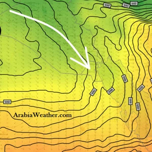 وفي التفاصيل، يتوقع اندفاع كتلة هوائية باردة نسبيا من بلاد الشام شرقا نحو شمال الجزيرة العربية والعراق مع توقع تشكل مرتفع جوي قوي في تلك المناطق بالتزامن مع تواجد لكتلة هوائية دافئة جنوباً.