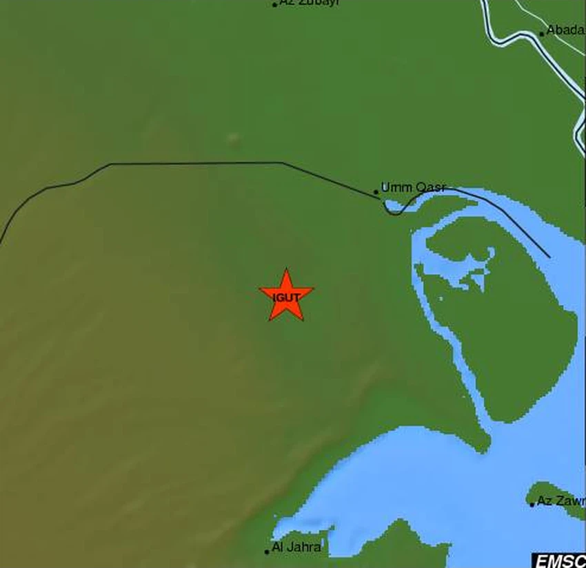 الهزّة الأرضية تمركزت على بعد 55 كيلومتراً شمال العاصمة الكويت، و على بعد 30 كيلومتراً إلى الجنوب الغربي من منطقة أم قصر في العراق، وقعت في تمام الساعة 4:01 فجراً بتوقيت الكويت.
