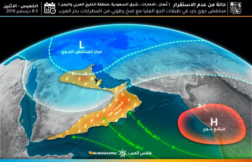 طقس العرب- تشير النماذج العددية المشغلة لدى طقس العرب إلى توقعات بتأثر سلطنة عُمان بحالة من عدم الاستقرار الجوي، تبدأ بشكل محدود وضعيف يوم الخميس على السواحل الجنوبية للبلاد.