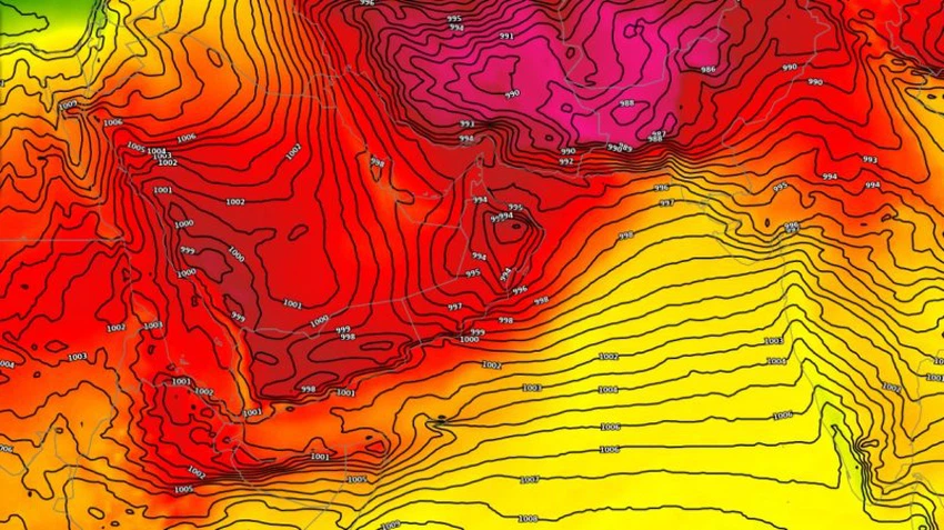 طقس العرب - تتمثل الأنظمة الجوية خلال الفترة القادمة بتمدد واسع للمرتفع الجوي اواسط القارة الأوروبية مما يضمن سلوك الكتل الهوائية المعتدلة نحو شرق المتوسط، يعمّل توزيع الأنظمة الجوية بهذا الشكل بمشيئة الله إلى نشاط واضح للتيار النفاث فوق الجزيرة العربية وبناء قوي للمرتفع الجوي العلوي الكامن فوق الجزيرة العربية وما يترتب عنه من تعمق منخفضات سطحية بقيم متدنية ناحية شرق الجزيرة العربية وتعمقه تارتاً نحو سلطنة عُمان، حيثُ يشكّل مركز المنخفض الحراري بمثابة مركز لاهب للكتل الحارّة.