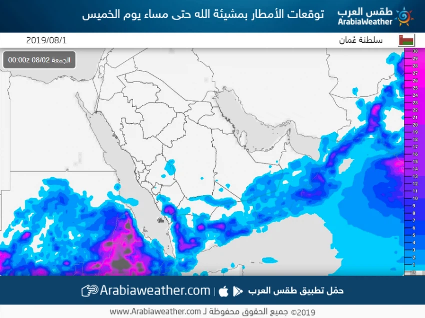 طقس العرب - سنان خلف - من المُتوقع بمشيئة الله أن تكون حالة الطقس في سلطنة عُمان يوم الخميس على النحو التالي: